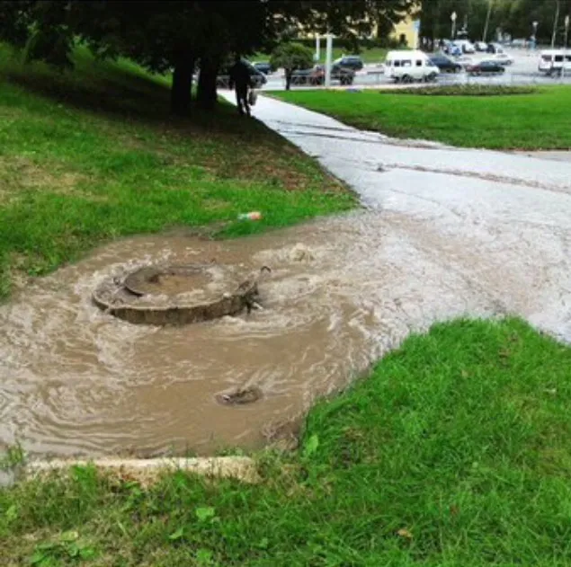 По словам молодого человека, прорыв канализации произошёл неподалёку от железнодорожных путей, поток нечистот такой мощный, что тротуар и дорога покрыты слоем фекалий: