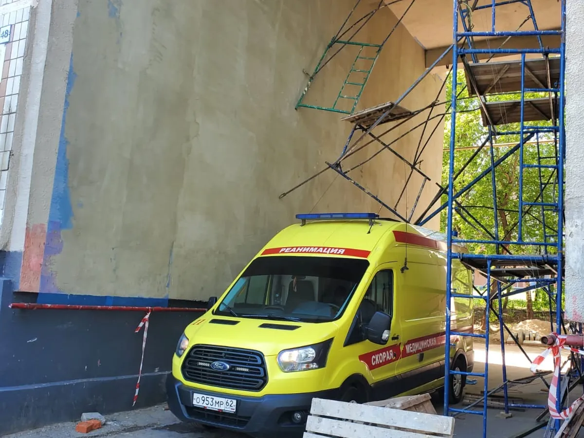 На Касимовском шоссе в Рязани строительные леса упали на реанимобиль