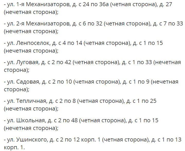 Так, в период с 9:30 до 17 часов вечера доступа к водному ресурсу не будет в поселке Соколовка по следующим адресам: