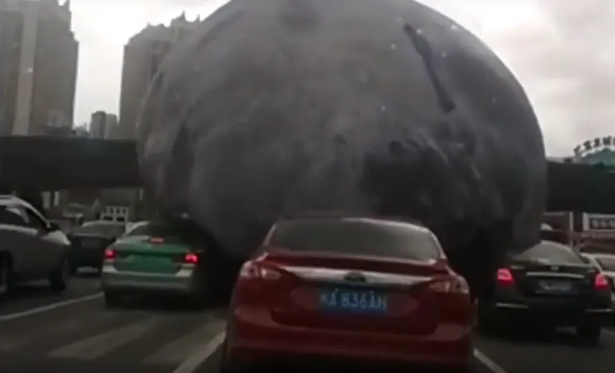 В Китае резиновый шар в виде Луны прокатился по дорогам