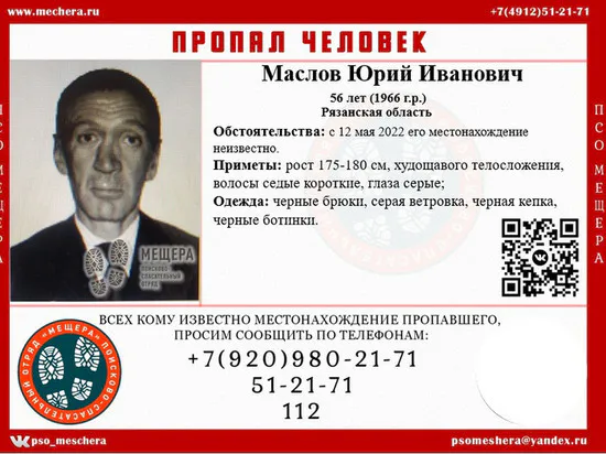 В Рязанской области ищут 56-летнего Юрия Маслова