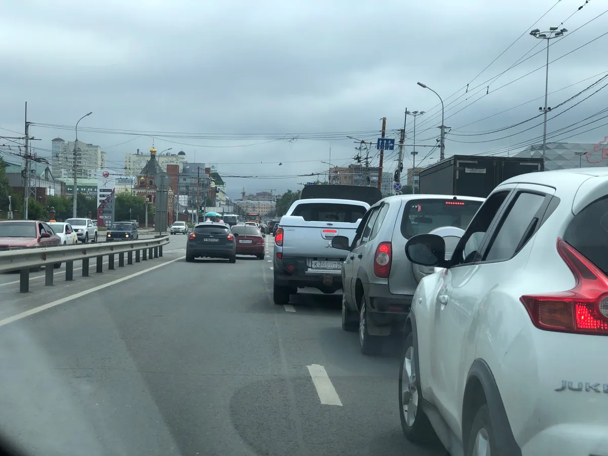 По словам автора публикации, большая автомобильная пробка образовалась рядом с ТРЦ «Премьер». Предполагается, что причиной затора стало дорожно-транспортное происшествие рядом с бизнес-центром «Барс на Московском».