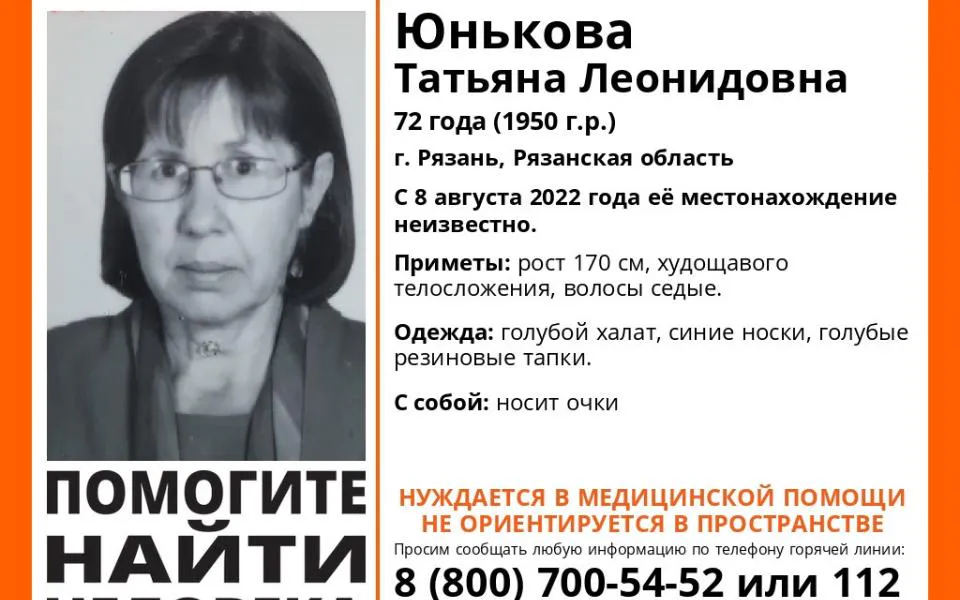 В Рязани ищут 72-летнюю Татьяну Юнькову