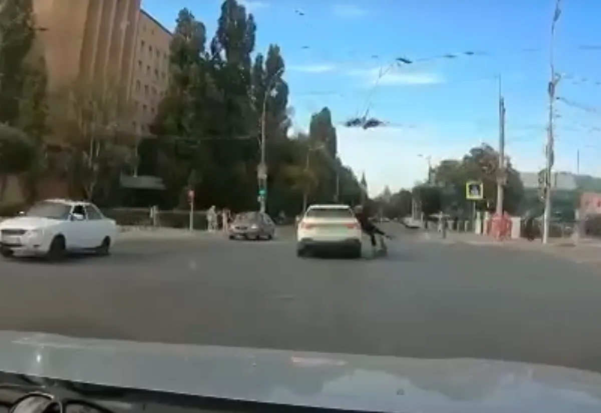 В Рязани на площади Ленина водитель легковушки сбил самокатчика, после чего решил уехать с места аварии. Видео с моментом ДТП было опубликовано очевидцем в социальных сетях в сообществе «Подслушано у водителей Рязани».