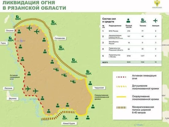 Рослесхоз показал карту тушения лесных пожаров в Рязанской области