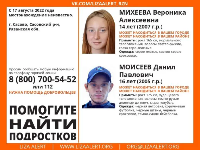 В Сасово Рязанской области 17 августа пропали школьница 14 лет и парень 16 лет, сообщает поисковый отряд Лиза Алерт. Информация об этом опубликована в официальной группе добровольцев 30 августа.