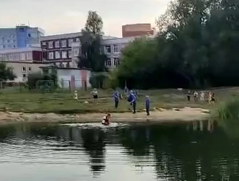 Видно, что рядом стоит женщина, которая кричит и плачет. Установлено, что трагический инцидент произошел вечером 28 августа. По словам очевидцев, пруд расположен в десятках метров от школы №69.
