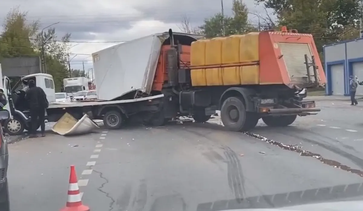 Инцидент случился в среду, 7 сентября, на перекрестке улицы Авиационной и Московского шоссе. На кадрах, появившихся в сообществе «Подслушано у водителей Рязани» видно, что столкнулись два грузовых автомобиля.