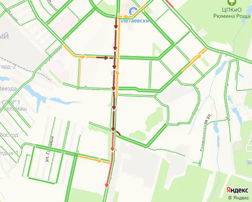 Пробка возникла утром в понедельник, 19 сентября, на улице Черновицкой. Согласно данным сервиса «Яндекс.Карты», 10-балльная пробка растянулась от перекреста с улицей Гагарина до заправки.