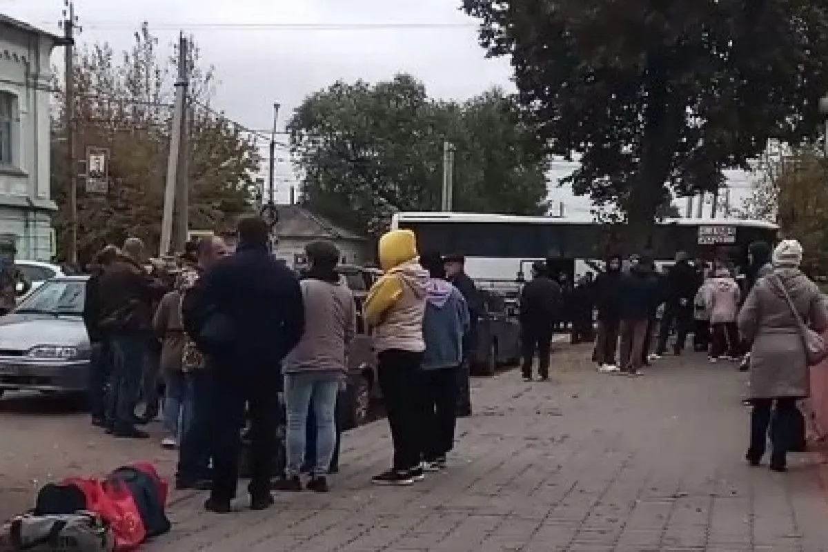 Стало известно о том, что в городе Скопине Рязанской области была запечатлена толпа людей рядом со сборным пунктом военкомата. Соответствующие фото сегодня, 23 сентября 2022 года, были опубликованы в Telegram-канале «Типичная Рязань».