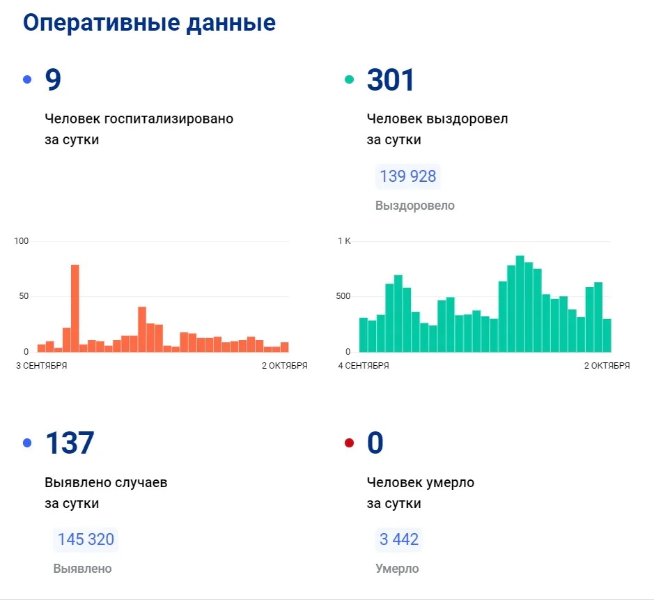 Оперштаб опубликовал данные, что летальные случаи в регионе от ковида в последние сутки не зафиксированы. Общее число летальных исходов от коронавируса за все время держится на цифре - 3442.