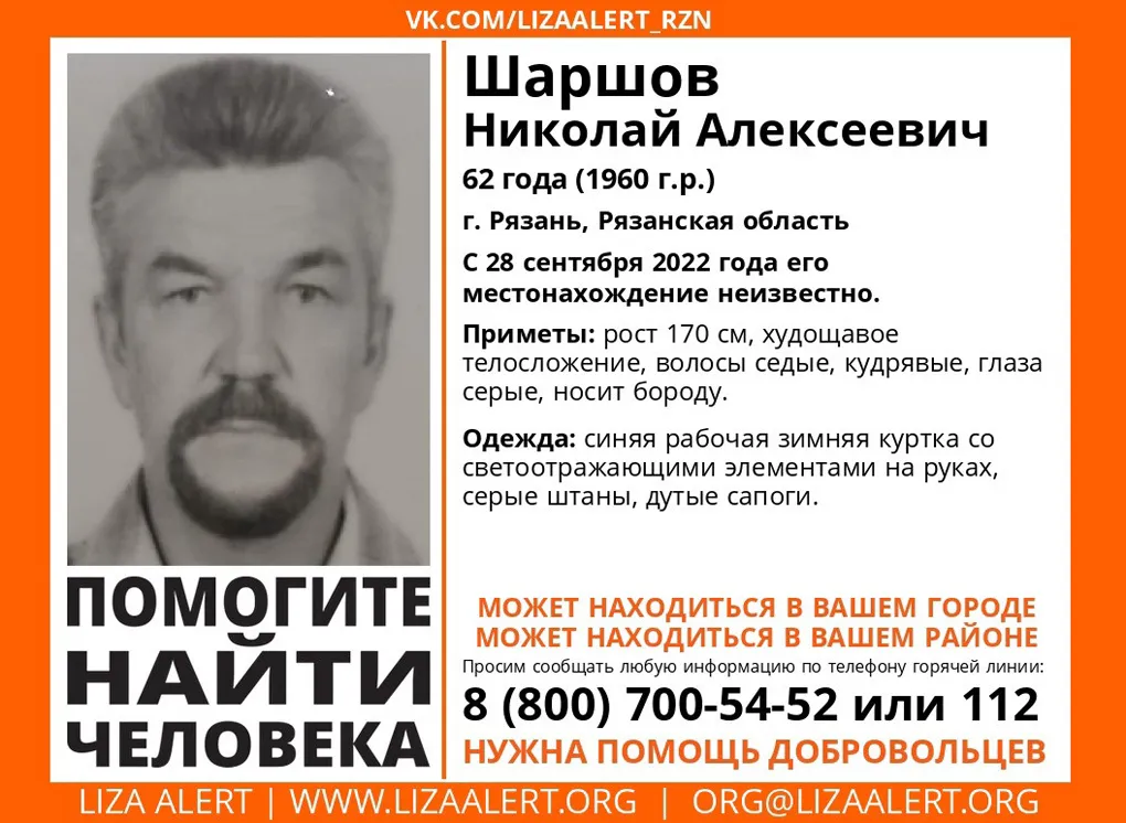 Местонахождение пропавшего человека остается неизвестным по сей день. К поискам Шаршова подключились волонтеры и полиция. Рязанцев просят помочь в розыске мужчины.