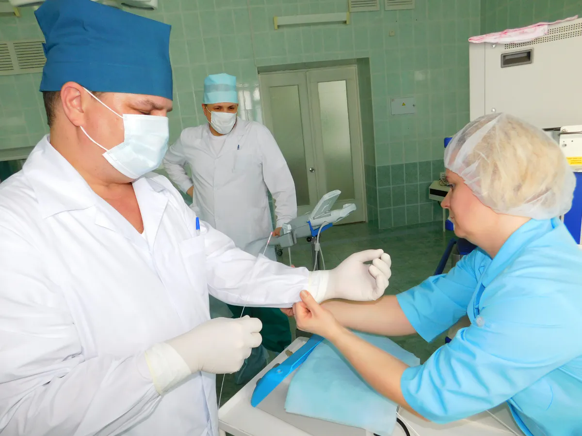 Рязанские врачи впервые удалили опухолевый тромб из почки, действуя одновременно. Онкологи отделили почку, а сосудистые хирурги обособили и временно пережали нижнюю полую вену. Затем они удалили почку, открыли просвет вены и извлекли опухолевый тромб размером 2х3 см.
