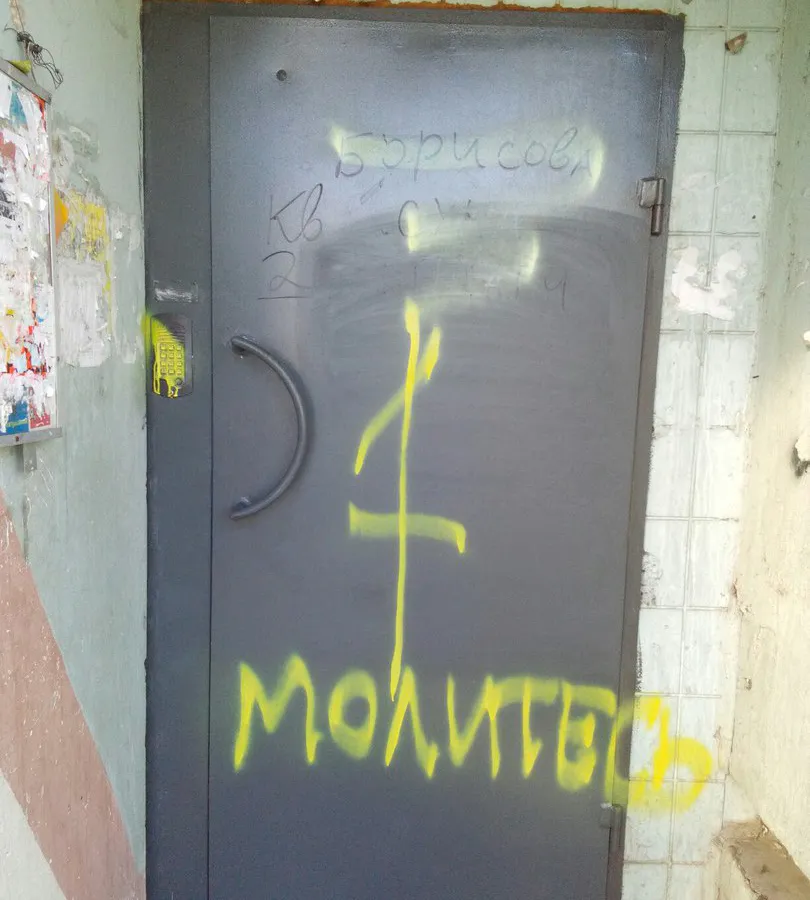 - Судя по фото, бывшие жильцы задолжали денег коллекторам. которые и донимают весь подъезд. Получить долг они не могут, вот и страдают все, - рассказал специалист Юрий Болотов.