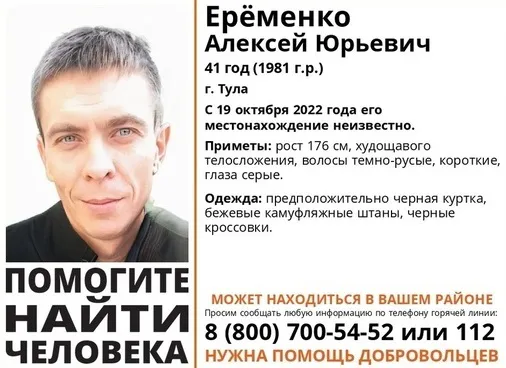 Жителей Рязанской и Тульской областей попросили помочь в поисках исчезнувшего 41-летнего мужчины. О его местонахождении неизвестно с 19 октября 2022 года. Об этом рассказали в региональном поисково-спасательном отряде «ЛизаАлерт» в социальных сетях.