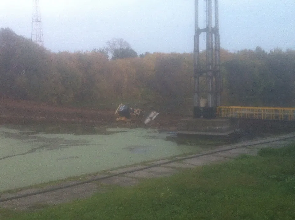 На Рюминском пруду, возле стадиона ЦСК, провалился в воду трактор. Очевидец выложил  фотографии инциндента в социальную сеть.