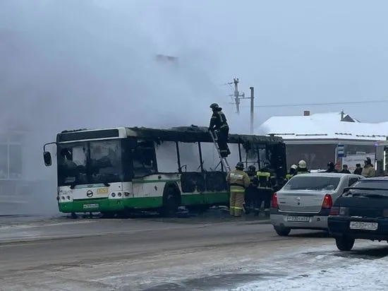 Загоревшийся автобус №10 на улице Семчинской в Рязани тушили 10 человек