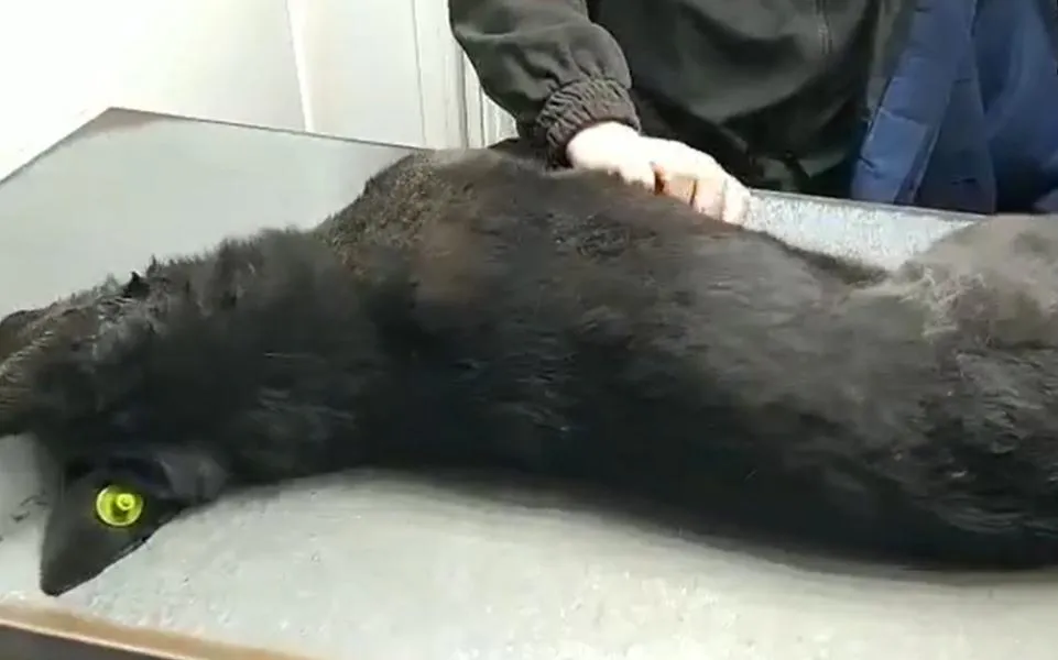 На ролике видно, что животное, которые лежит на столе ветеринарного врача, трясет. Собаку пытаются спасти. На её ухе чип, который свидетельствует о том, что животное является стерилизованным, вакцинированным и неагрессивным.