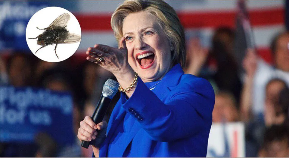 Во время последнего выступления Клинтон, ей на бровь села муха, из которой западные журналисты тут же раздули сенсацию. Есть подозрение, что речь кандидата в президенты США была настолько унылой, что муха заинтересовала репортеров куда больше.
