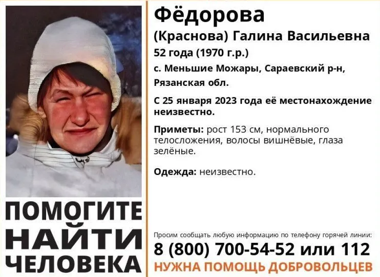 Жителей Рязанской области просят помочь в поисках пропавшей 52-летней женщины. Рязанка исчезла 25 января и с тех пор данных о ее местонахождении нет. Об этом рассказали в социальных сетях представители поисково-спасательного отряда «Лиза Алерт».