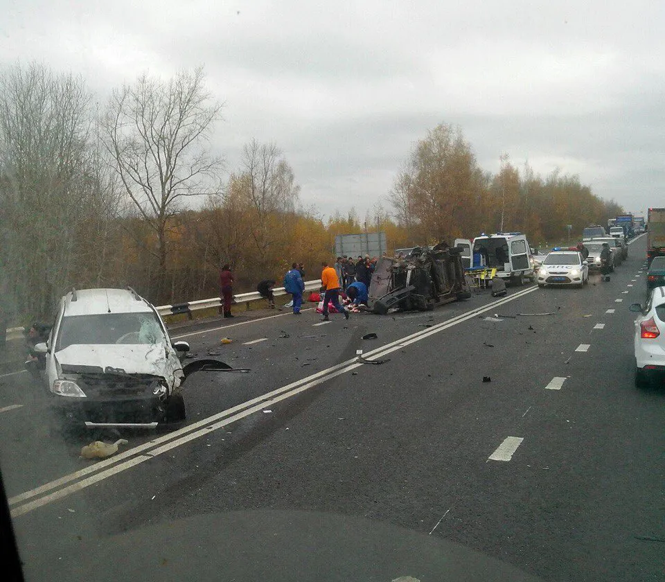 - Мы ехали с небольшой скоростью и это нас спасло. Микроавтобус вылетел на встречную полосу и столкнулся с грузовиком в лобовую. Фургон вынесло на встречную полосу, он врезался в отбойник а микроавтобус врезался в "Ларгус" и перелетел через него. Второй "Ларгус" уже уходил от столкновения вправо, но также принял на себя отбойник.