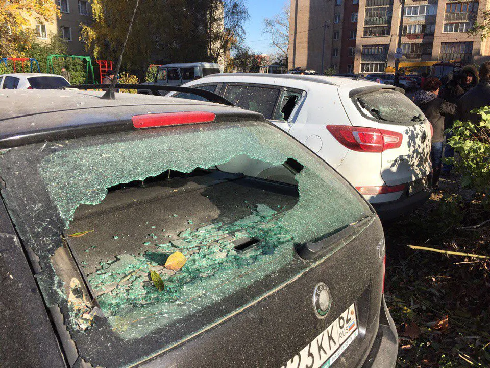 У дома были припаркованы автомобили, часть из них буквально расплющило обломками многоэтажки, сейчас машины эвакуируют на парковку на ул. Татарской. В соседнем дома от взрыва вылетели стекла.