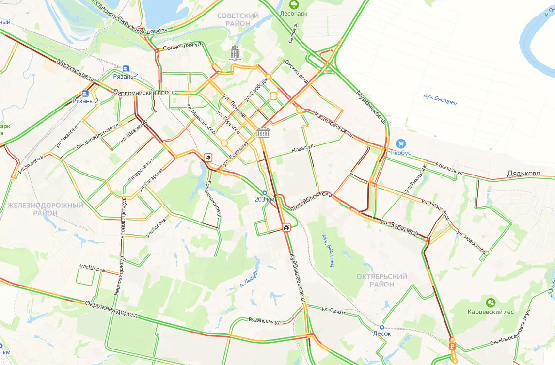 С 8 до 10 часов множество улиц города стоит в гигантских пробках. Произошел ряд аварий на улицах Шевченко, Спортивной, а также на Куйбышевском шоссе и Южной окружной дороге. Наименее благоприятная обстановка на дорогах утром сложилась в Дашково-Песочне и Дядькове.