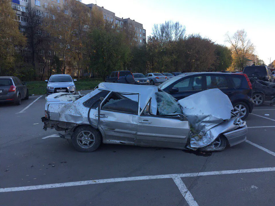 Припаркованные у дома автомобили превратились в груду железа