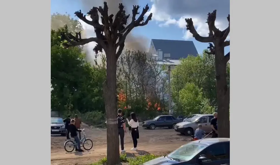 В Рязани очевидцы сняли на видео пожар 14 мая 2023 года. Горит неизвестный объект на уровне Некрасова. Видео опубликовано в паблике ВКонтакте "Подслушано в Рязани".
