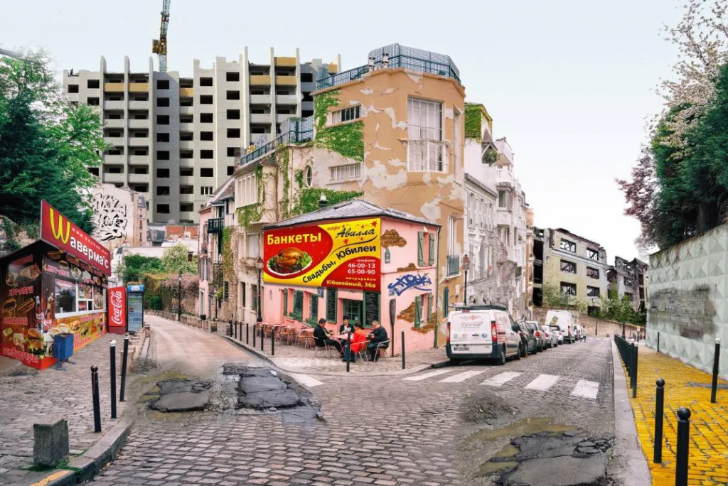 «Одна из самых проблемных точек французской столицы — холм Монмартр. До сих пор у района неоднозначная репутация. Память о разнузданных нравах квартала красных фонарей, годах бедности обитавших здесь художников-декадентов Ван Гога и Ренуара, бездуховном кабаре «Мулен Руж», являющимся синонимом низкой культуры… Между тем это самая высокая точка Парижа. И грешно не использовать её для строительства высотного жилья с прекрасными видами на все округа города любви и романтики. Заодно таким образом можно избавиться и от неудобных приземистых халуп, связанных с печальными днями Ван Гога»