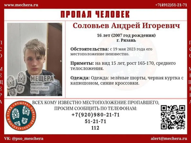 Сообщается, что Андрей Соловьев пропал в минувшую пятницу, 19 мая 2023 года. Рост подростка составляет 165-170 сантиметров, телосложение среднее. В день исчезновения он был одет в куртку с капюшоном черного цвета, зеленые шорты и синие кроссовки. Всех, кому что-либо известно о возможном местонахождении юноши, убедительно просят сообщить по любому из номеров: +7 (920) 980-21-71, 51-21-71 или 112.