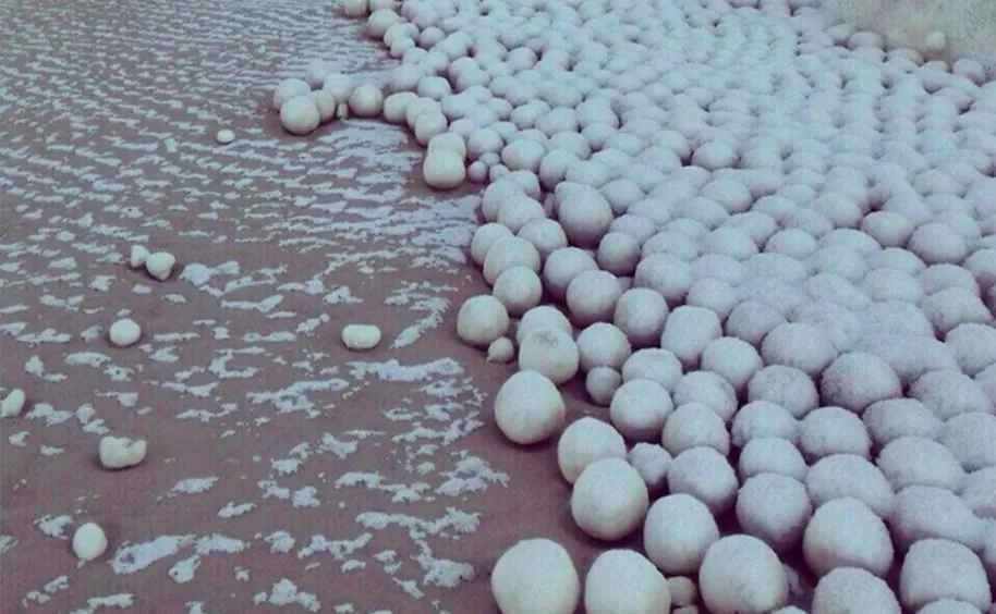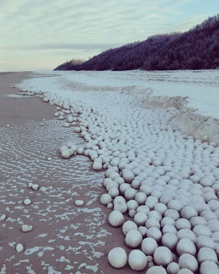 На Ямале возле села Ныда было зафиксировано необычное природное явление — 18 километров побережья Обской губы оказалось усыпано ледяными шарами от 10 до 25 сантиметров в диаметре. В телевизионном сюжете об этом рассказывает «Вести — Ямал».  В администрации села объяснили, что шары образовались из снега и обломков прибрежного льда, обкатанных волнами.