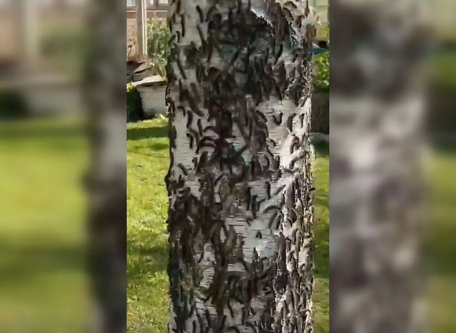 Рязанцы запечатлели на видео атаку гусеницы шелкопряда на городские деревья. Соответствующий ролик был опубликован сегодня, 11 июня 2023 года, в сообществе «Рязань» в социальной сети «ВКонтакте».
