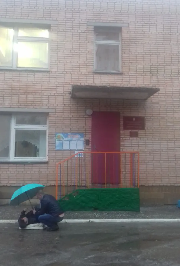 Добросердечные родители, которые привели детей в сад,  "порхали" над ним. Мужчина держал зонт. Воспитатели вынесли матрас. Медсестра детского сада провела осмотр. Охранник на входе предупреждал о данной ситуации, рассказала очевидица.
