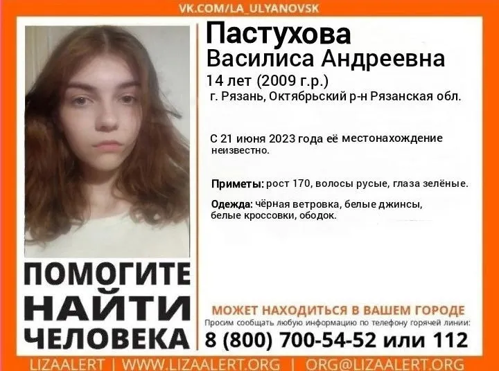 Сообщается, что местонахождение пропавшей Василисы Пастуховой неизвестно с 21 июня 2023 года. Рост девочки составляет 170 сантиметров, волосы русого оттенка, глаза – зеленые. В день исчезновения на неё была черная ветровка, белые джинсы и кроссовки, а на голове – черный ободок. Всех, кто располагает какими-либо данными о возможном местоположении девочки, убедительно просят сообщить по номерам 8-800-700-54-52 или 112.