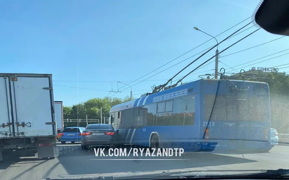 На Приокском путепроводе в Рязани произошло ДТП с Kia Rio и троллейбусом