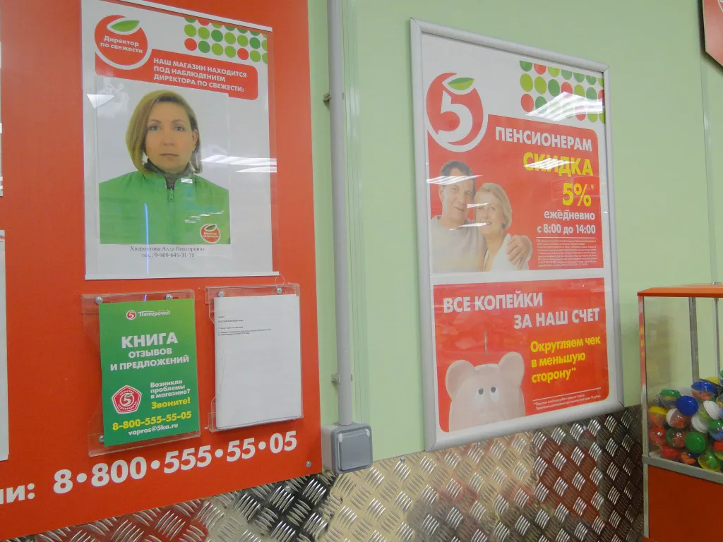 – Я замечал, что часто стоимость товара на ценнике и на кассе разнилась, – рассказывает Александр Николаевич. – Один раз увидел хлеб, который, если верить указанной дате, должен был выпекаться только завтра. А сушки, которые я там приобрел, оказались просроченными на несколько месяцев. Не сразу заметил. Все свои замечания по обслуживанию и "просрочке" я оставлял в книге жалоб. Но ответа не последовало. Чем тогда в магазине занимается директор по свежести? Не удивляйтесь, есть там такая должность. На стенде даже вывешено фото этой дамы. И написано, что магазин находится под наблюдением директора по свежести.
