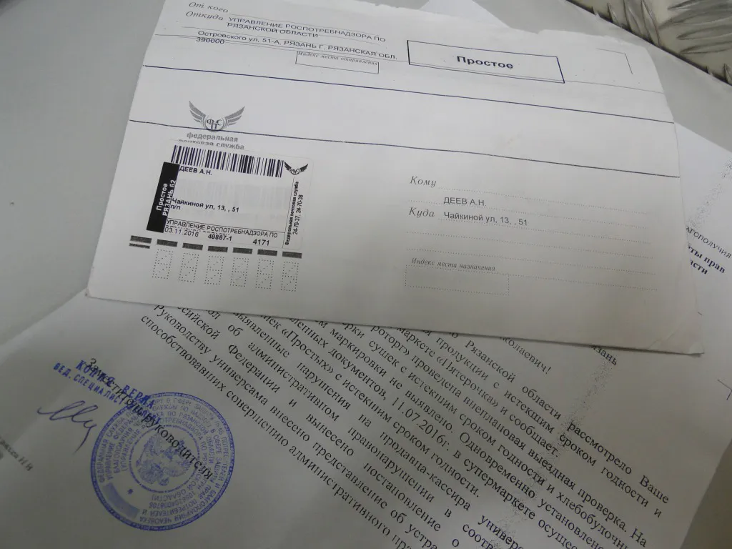 Рязанец написал по поводу просроченного товара жалобу в региональный Роспотребнадзор. Ему пришел ответ, который не удовлетворил Александра.
