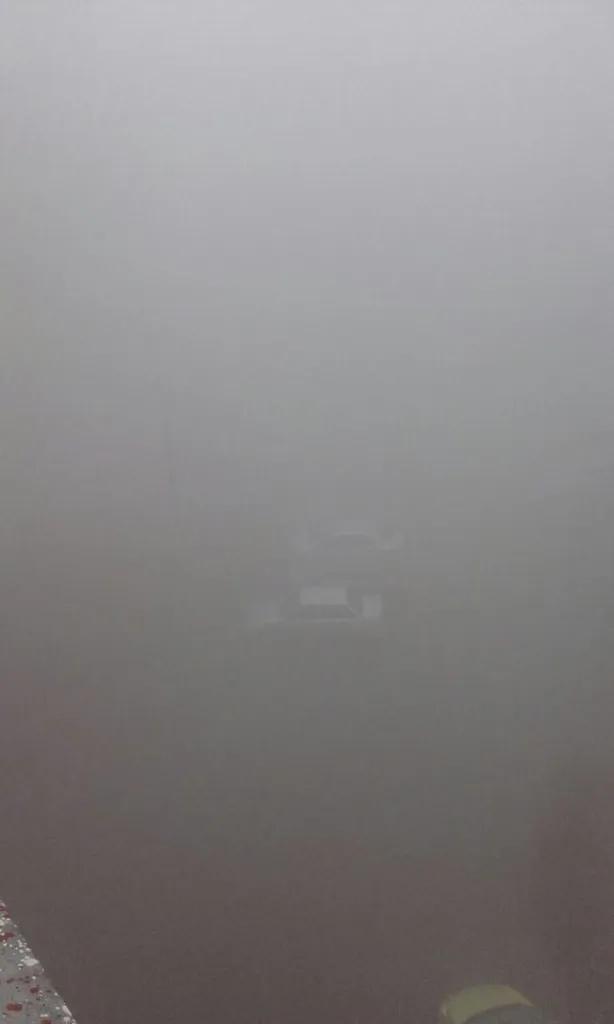 Жители  соседнего дома прислали фото, на котором пелена дыма застилает все  вокруг.