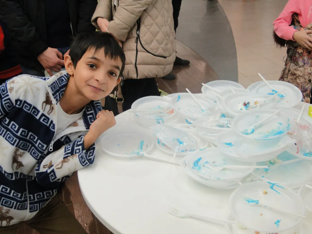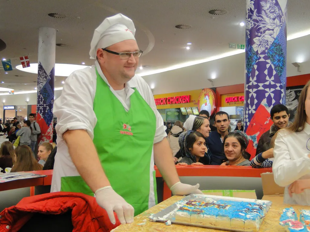 В этот вечер гостей торгово-разлекательного центра угощали «именинным» тортом.