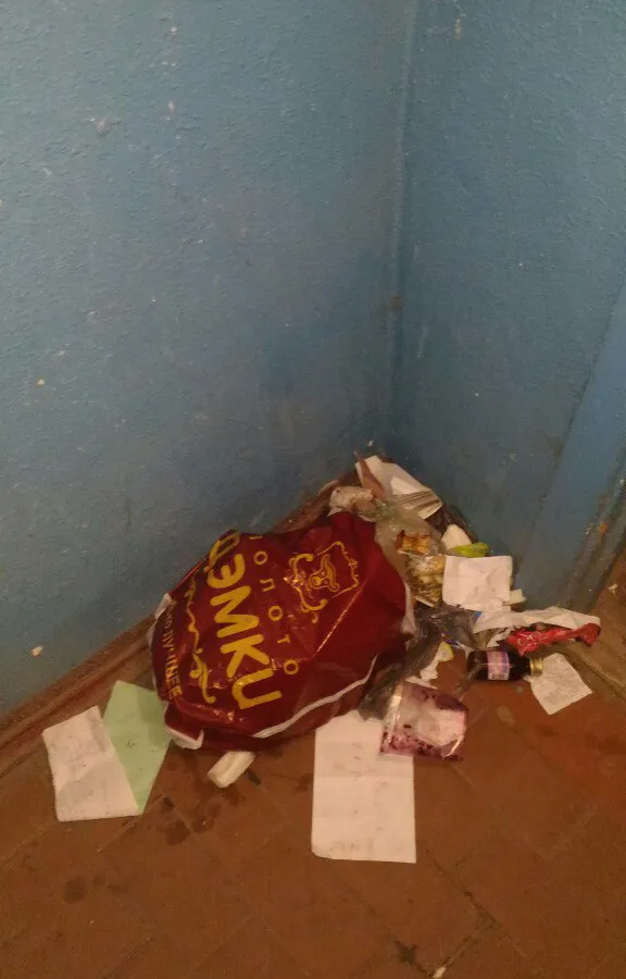 Народное фото: жильцы ведут расследование - кто оставляет мусор в подъезде по ночам