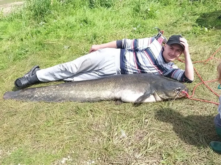 Житель Рязанской области поймал на Оке гигантского сома длиной в человеческий рост