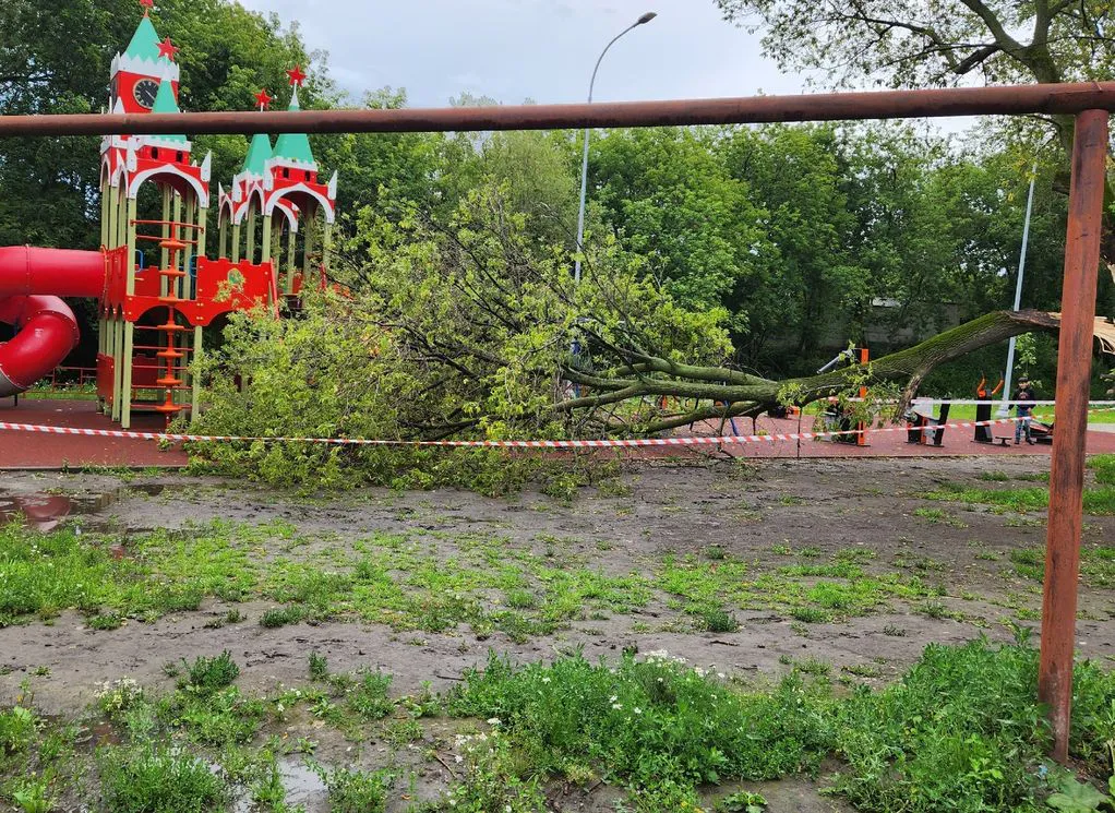 На детскую площадку в сквере Октябрьского городка в Рязани упало дерево