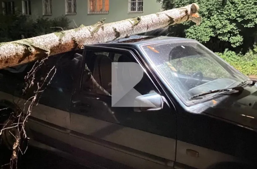 В Рязани на парковке около многоэтажного дома на легковую машину рухнуло дерево. В социальной сети ВКонтакте в паблике Rzn life очевидцы выложили кадры с места событий.