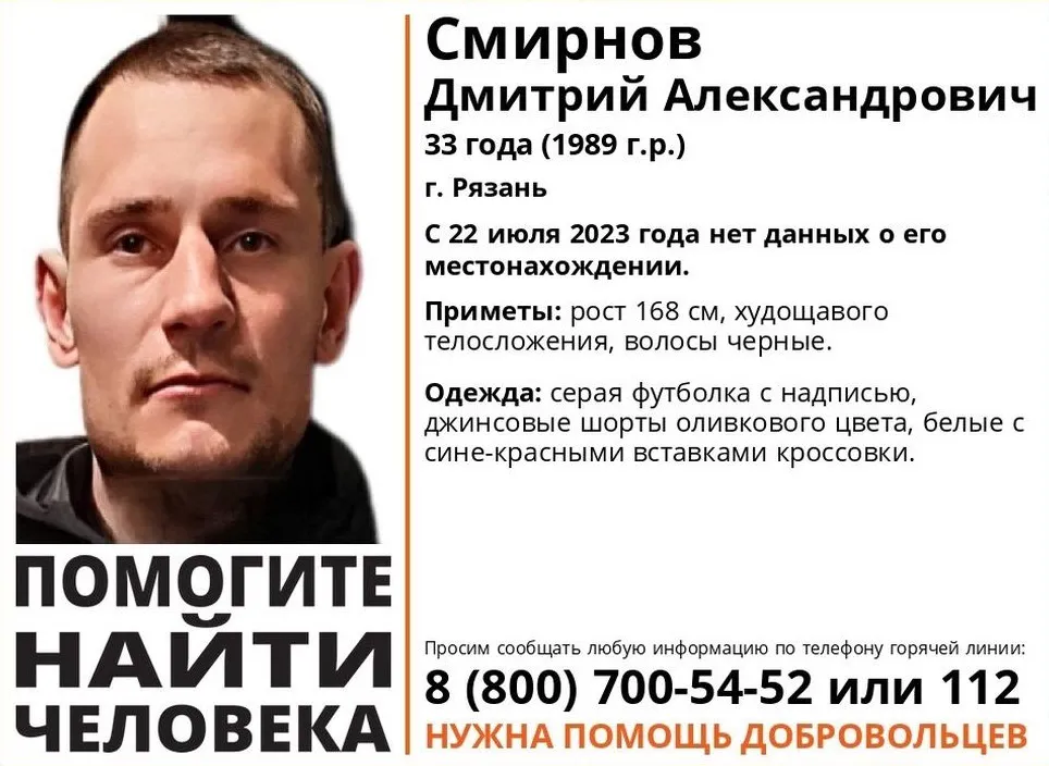 Жителей Рязанской области просят помочь в поисках пропавшего 33-летнего мужчины. Данных о его местонахождении нет с 22 июля. Об этом рассказали добровольцы поискового отряда «Лиза Алерт» в социальных сетях.