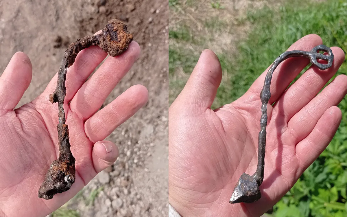 Экспедиция археологов на Северном мысу Старой Рязани обнаружила часть старинной шпоры. Снимки необычной находки опубликованы в группе СТРАЭ РАН в социальной сети «ВКонтакте».