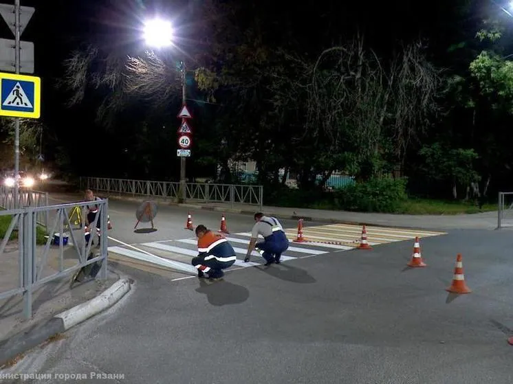 В Рязани по ночам проводят работы по нанесению дорожной разметки