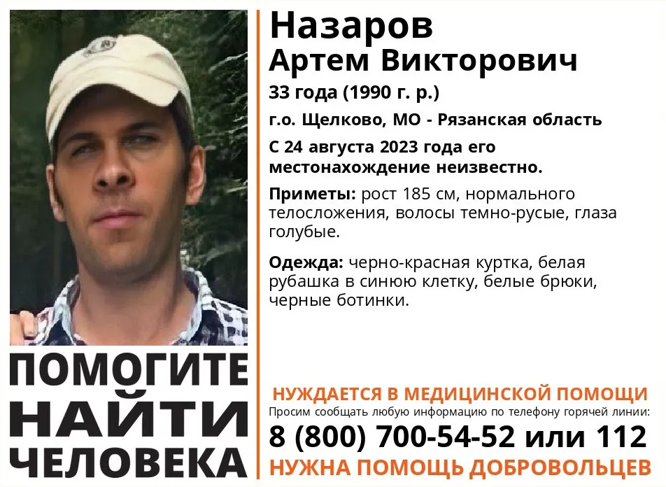 Жителей Рязанской области просят помочь в поисках разыскиваемого 33-летнего мужчины. О его местонахождении ничего не известно с 24 августа. При этом пропавшему требуется медицинская помощь. Об этом рассказали волонтера поисково-спасательного отряда «ЛизаАлерт» в социальных сетях.
