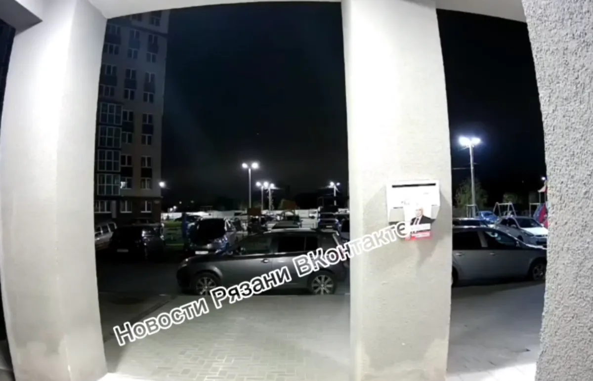 Камеры наблюдения зафиксировали момент уничтожения беспилотника в Рязани