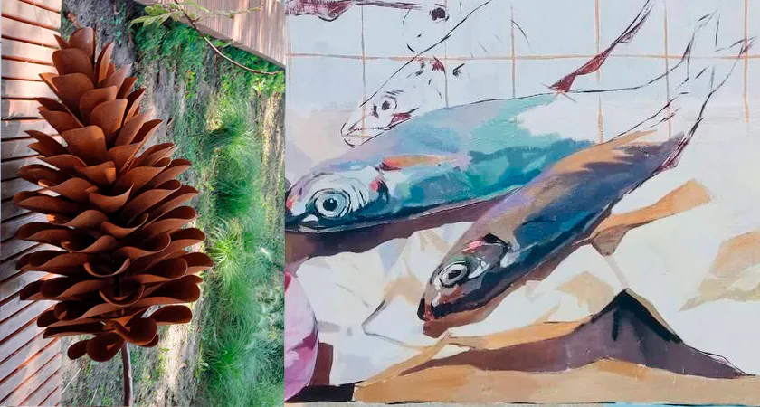 На улице Интернациональной, 11Б рисуют мурал с изображением рыб. «Аппетитный мурал, со вкусом», – прокомментировал местный житель. А на Лыбедском бульваре установили две металлические шишки, которые сделаны из железных совков от лопат. Шишки расположены на импровизированной поленнице рядом с хвойными деревьями. Возле арт-объекта имеются несколько скамеек для отдыха. «И хвойно-возвышенно, и лампово-приземленно», – оценили горожане. Ранее мы сообщали, что 28 августа у филармонии в центре Рязани установили ворота в виде нотного стана, а на манеже Рязанского цирка 12 августа сотрудники заложили капсулу с посланием для потомков.